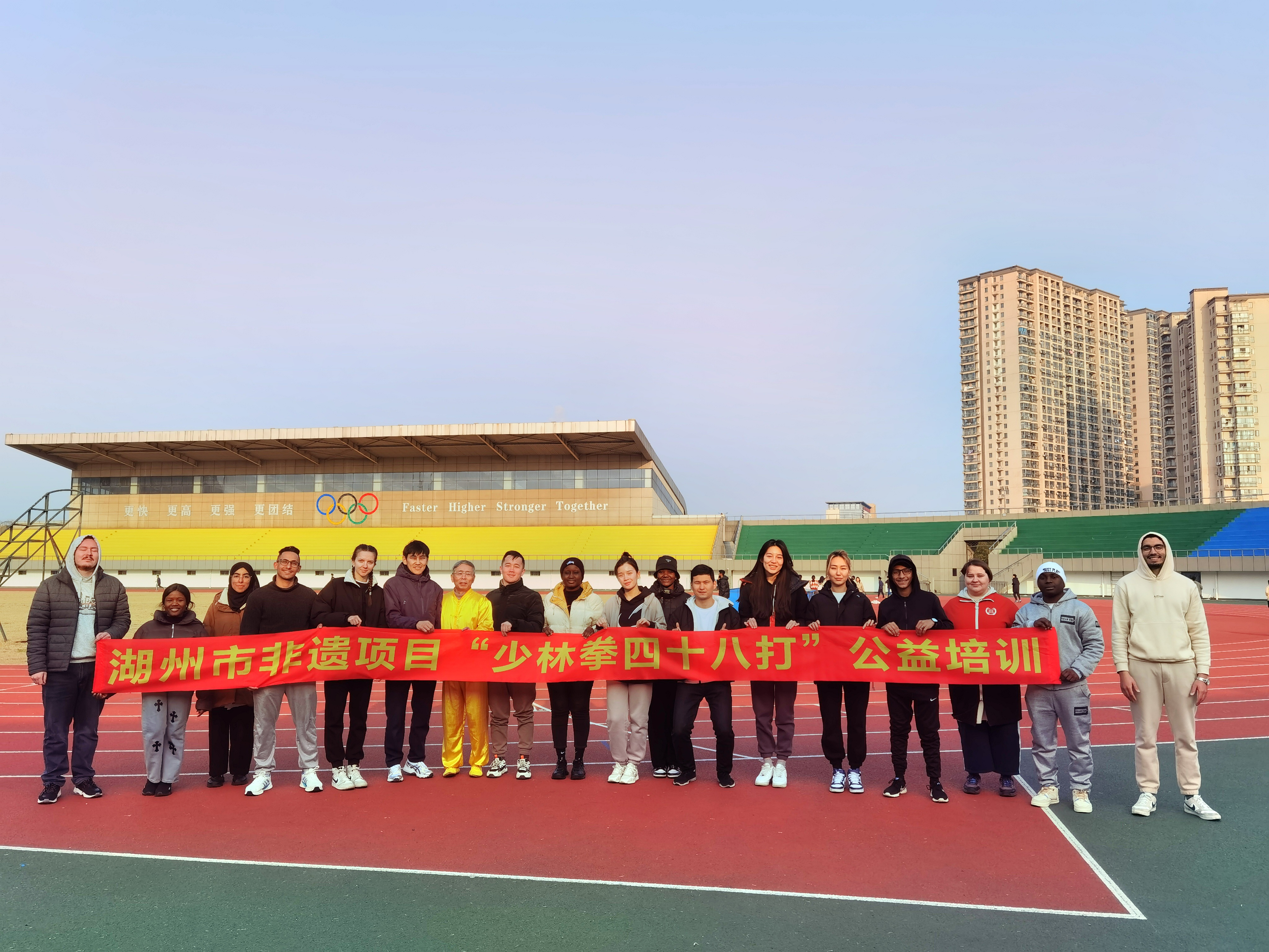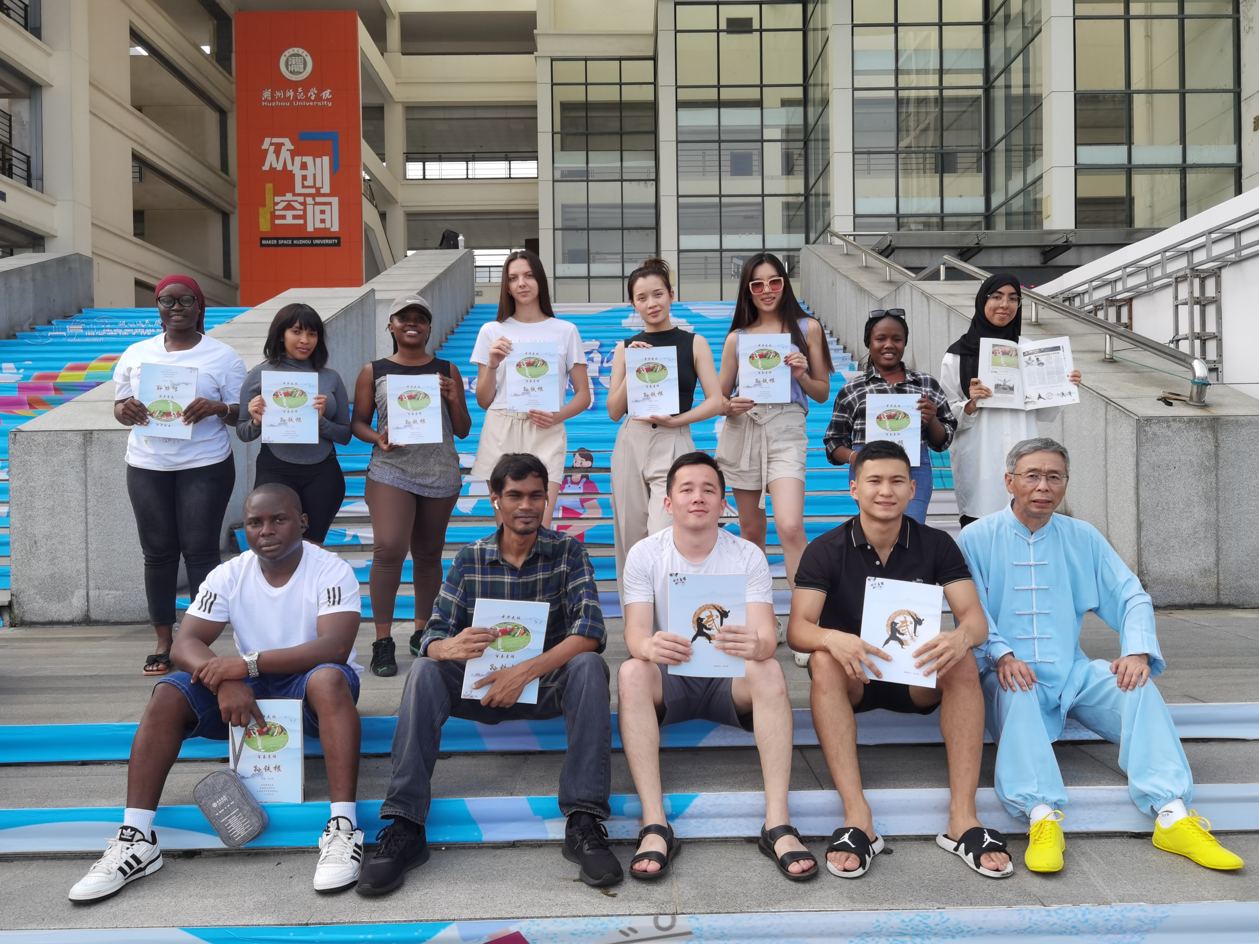 湖州师范学院国际学院“中华文化课程 一一 武术”于近日在湖州师范学院结束,来自亚洲,欧洲,非洲等地区的国际留学生,两个班,共29人参加了武术学习,由湖州师范学院外国语学院英语教师、中国当代武术家、孙铁根武术代表性传承人孙水良担任教学,主要教学了武术理论,武术基本功和孙铁根创编的湖州市非物质文化遗产《少林拳四十八打》,并将孙水良主编的《中华武坛 · 百套拳师 一一孙铁根》赠送于留学生。